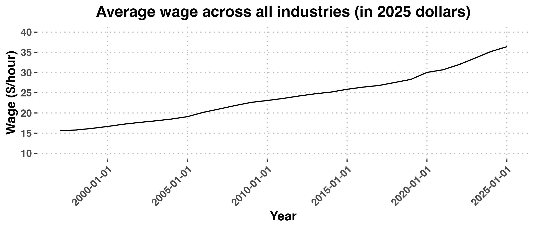 And here is a look at how Canadian wages, across all industries and types of work, have changed over the years.
